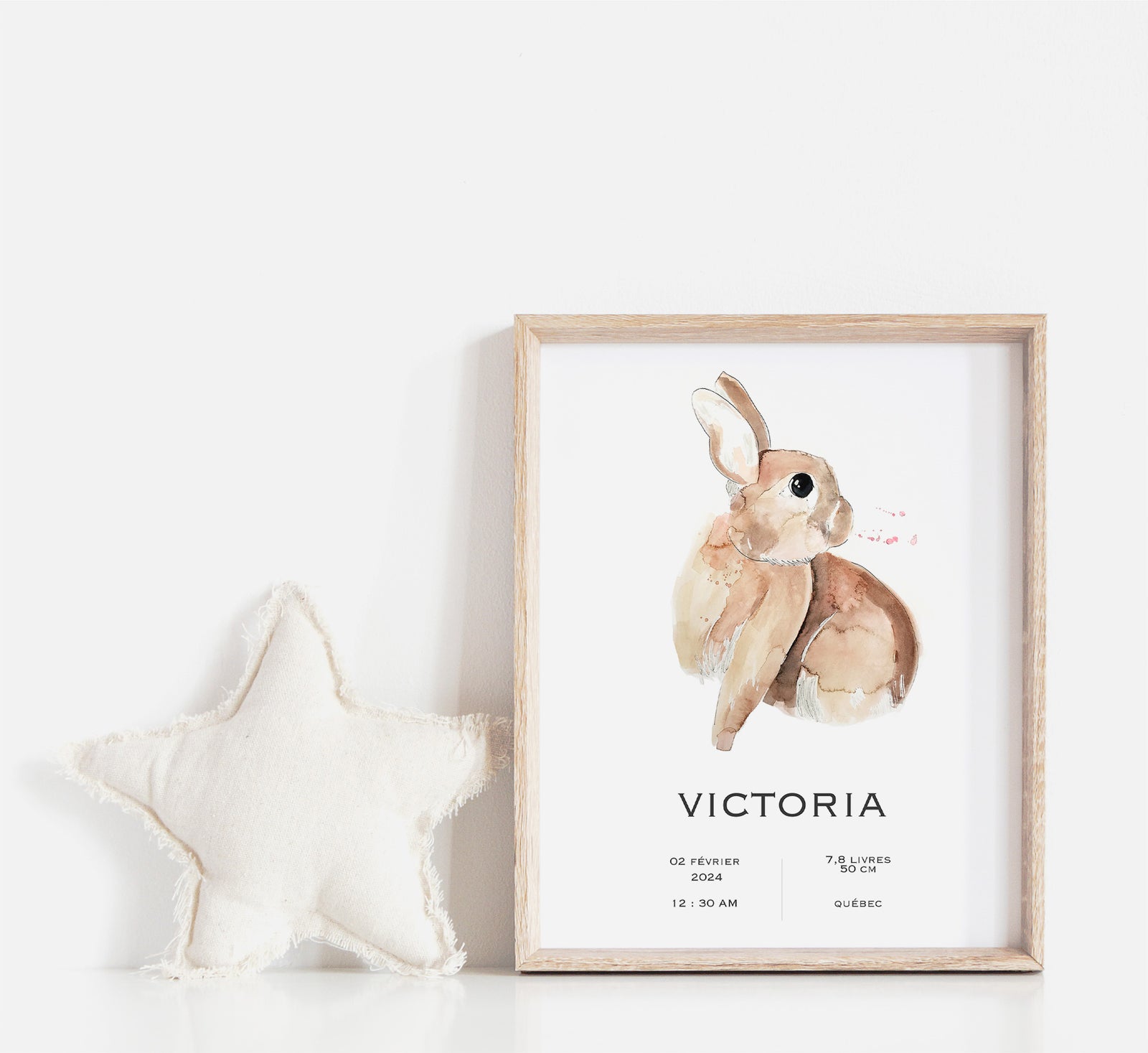 Discover my adorable birth poster featuring a sweet bunny illustration, perfect for celebrating the arrival of your little treasure.