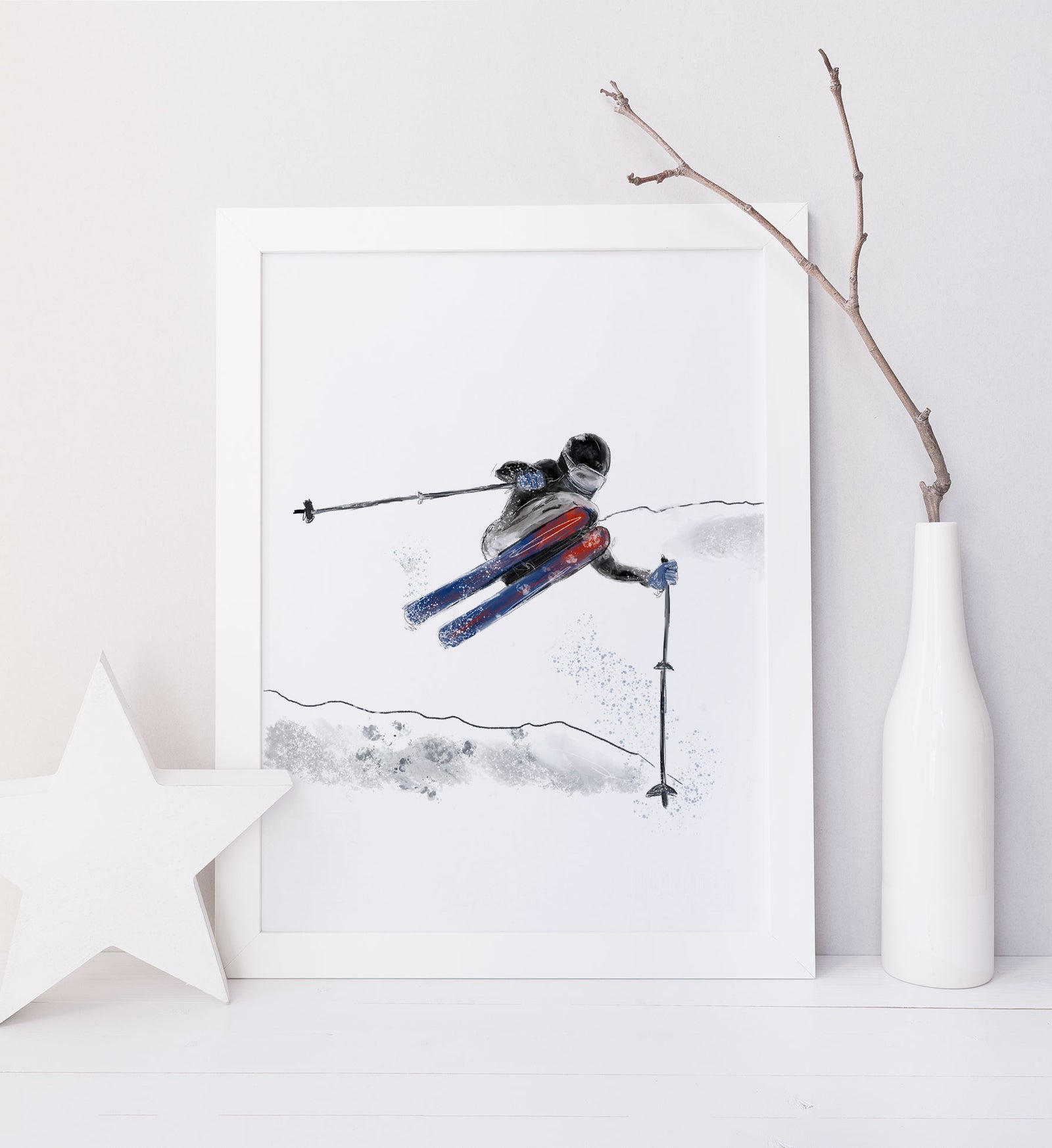 This illustration printed from the digital work of Cynthia Paquette is perfect for decorating the bedroom of your alpine skiing enthusiast child.