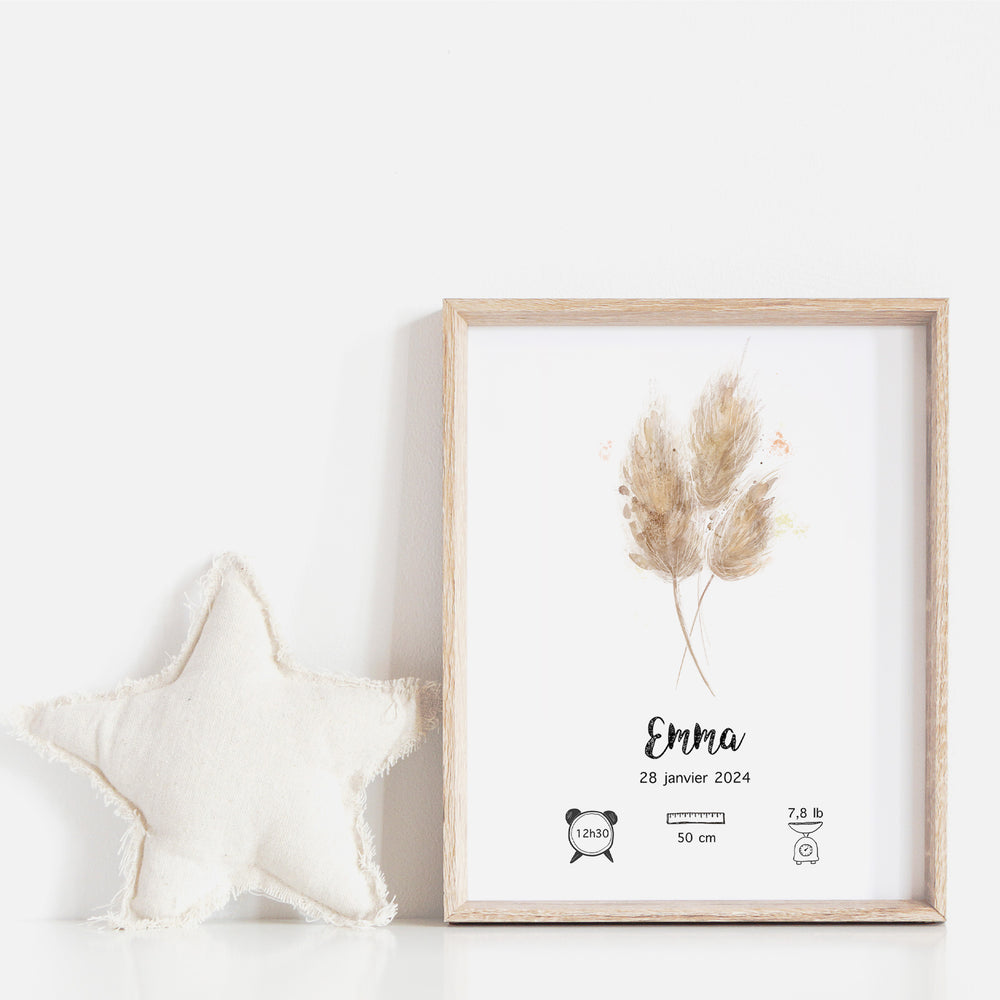 Disponible en différents formats, mon affiche de naissance s'adapte parfaitement à votre espace et à vos préférences. N'hésitez pas à communiquer avec moi pour davantage de choix. Choisissez de recevoir une version imprimée et soigneusement expédiée chez vous, ou optez pour la version numérique pour une impression à la maison et confectionnée avec soin sur demande selon votre choix de dimensions.